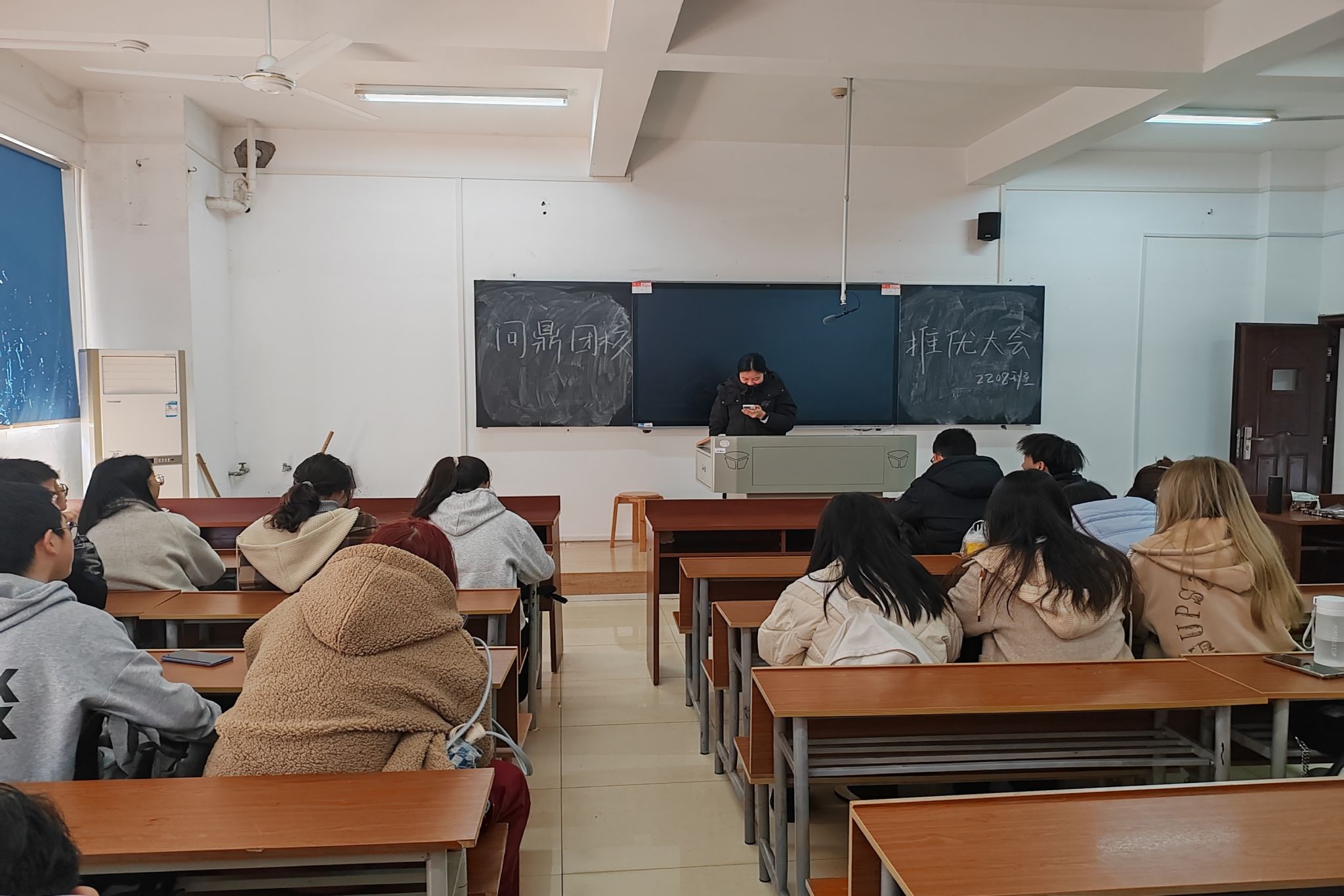 会议伊始,吴晰睿介绍了此次“问鼎团校”会议的重要性与注意事项。候选人黄怡发言,分别讲述了欲进入团校学习的原因和自身的优势,以及进入团校之后未来学习的计划与目标。候选人积极发言,表明了进入团校学习的决心。除候选人以外的参会人员进行投票,投票过程严肃认真,秉持公平公正原则,经过投票和计票,黄怡获得进入团校学习的名额。