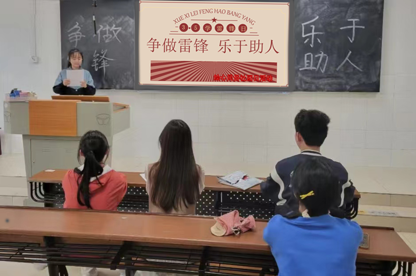 活动伊始,王燕介绍此次活动主题及活动名称,并通过PPT详细讲解雷锋的生平以及“雷锋精神”的主要内涵。随后同学们通过观看雷锋纪录片,进一步了解雷锋同志的感人事迹,对于“雷锋精神”的深刻涵义有了全新的认知与体会。在讨论过程中,同学们积极发言,并以朗诵的形式向大家分享雷锋日记。会议最后,成员们各自分享此次“弘扬雷锋精神”主题班会的过程感受与心得体会,王燕再进行整理总结并宣布活动结束。