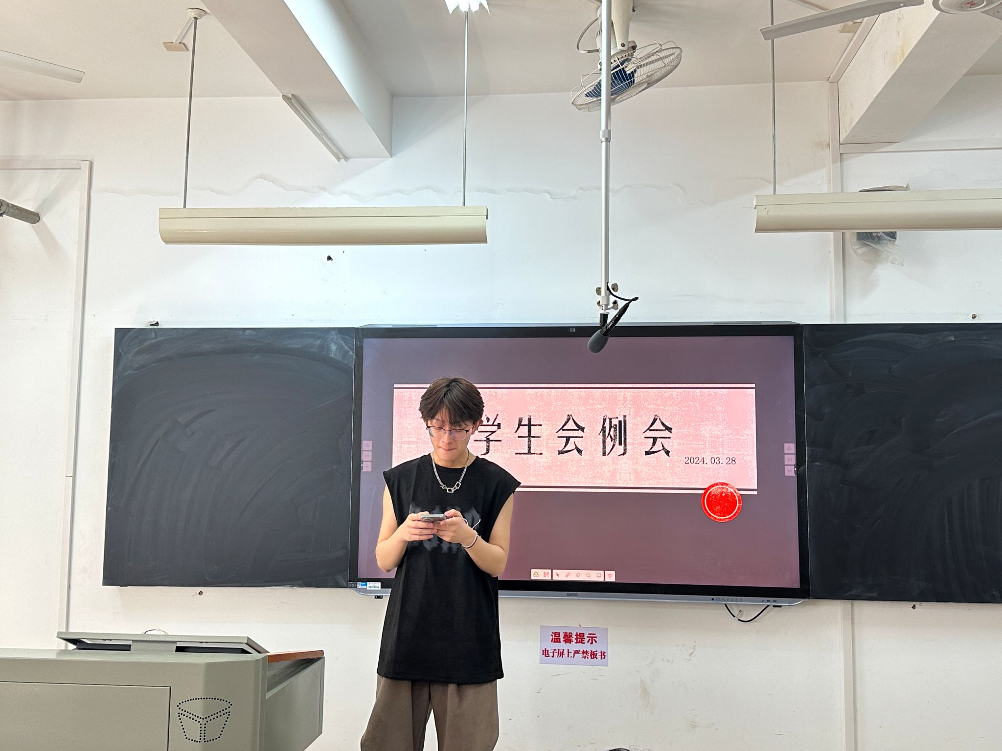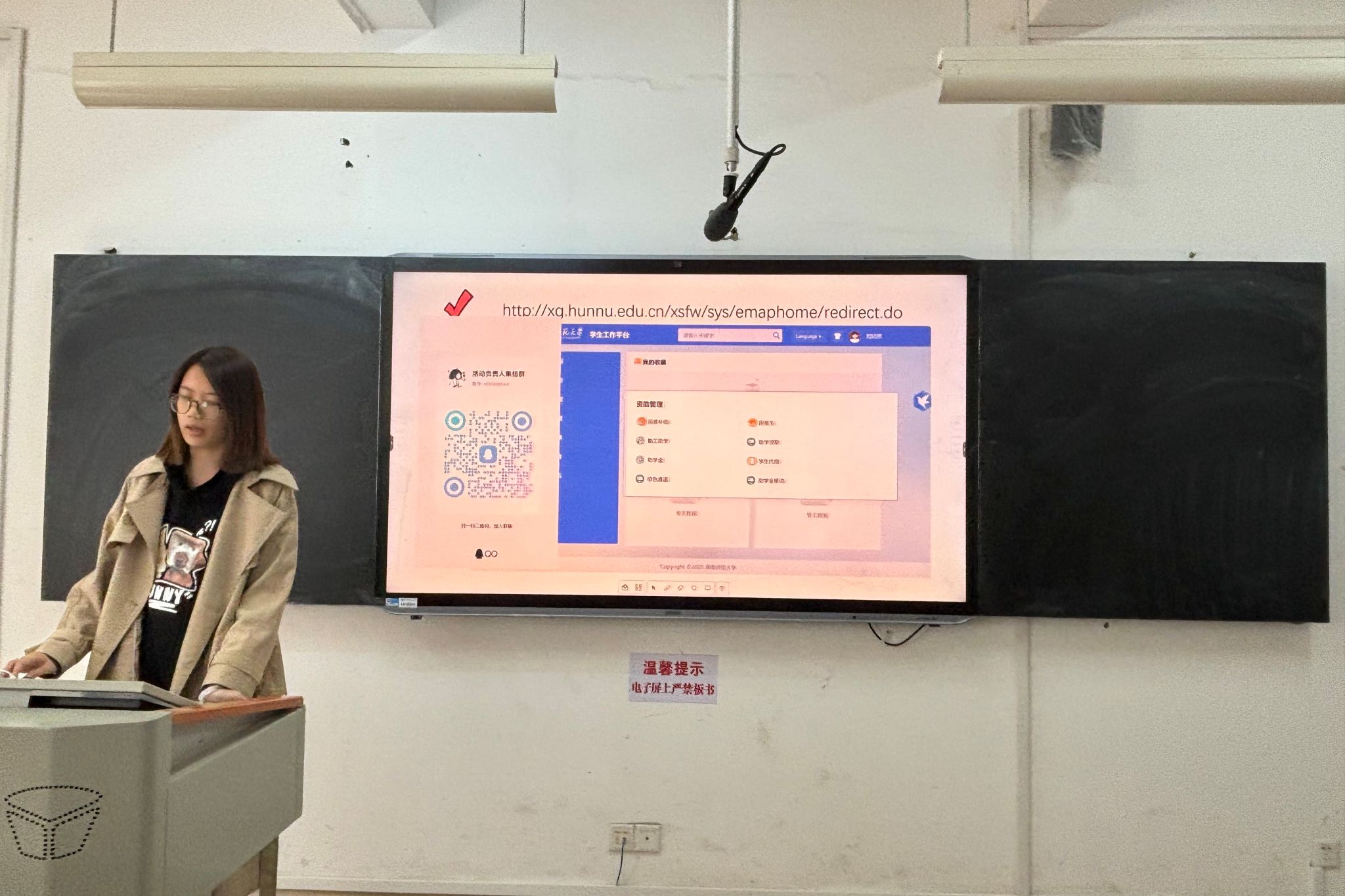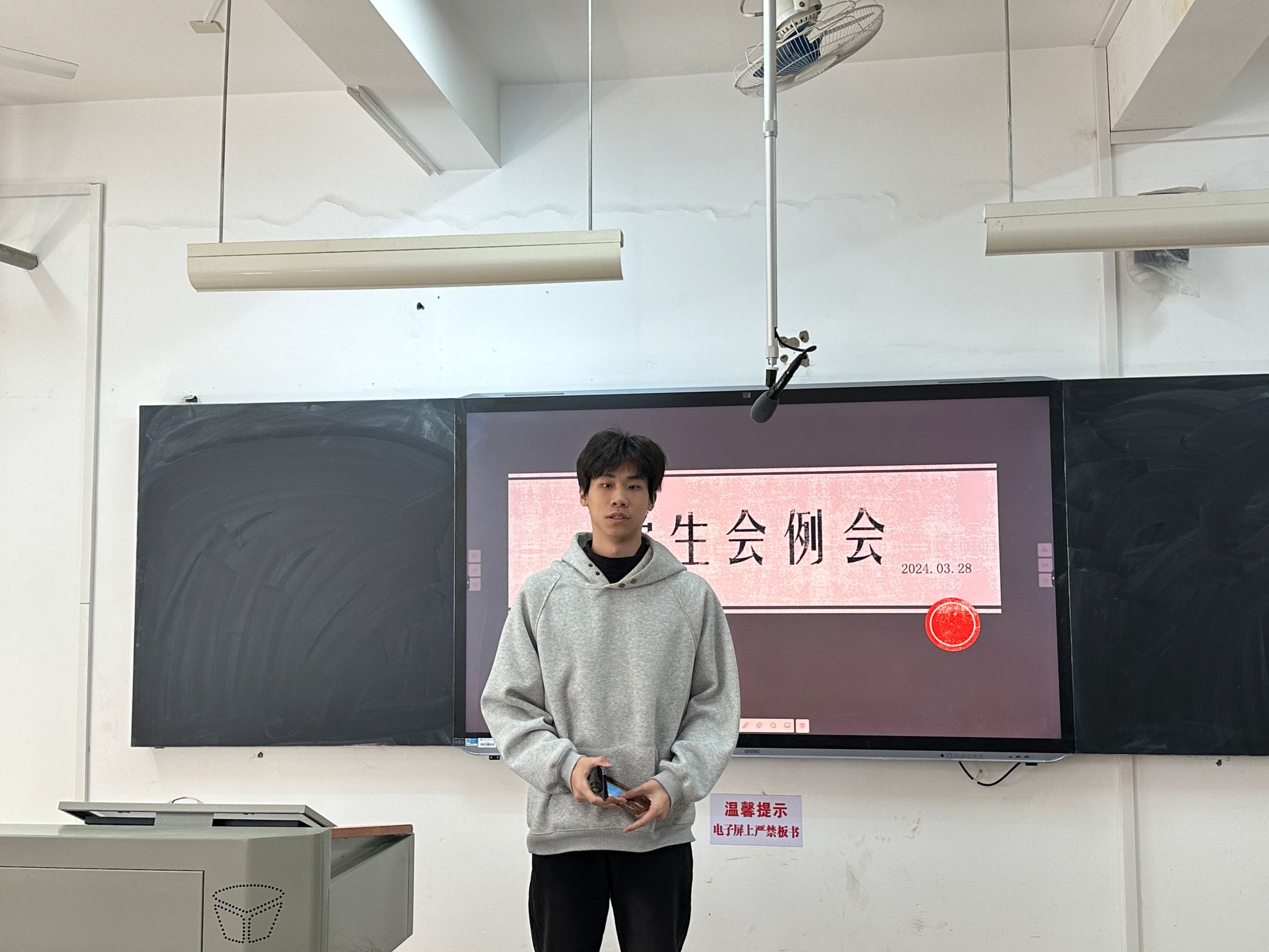 在各部门开展工作汇报之前,文体部第一负责人刘欣然上台进行办公室技能培训,向参会人员讲解了如何借用江边活动中心并申报活动账目,并根据自己的工作经验提醒了需要注意的相关细节,帮助学生会成员复习相关流程并加深印象。