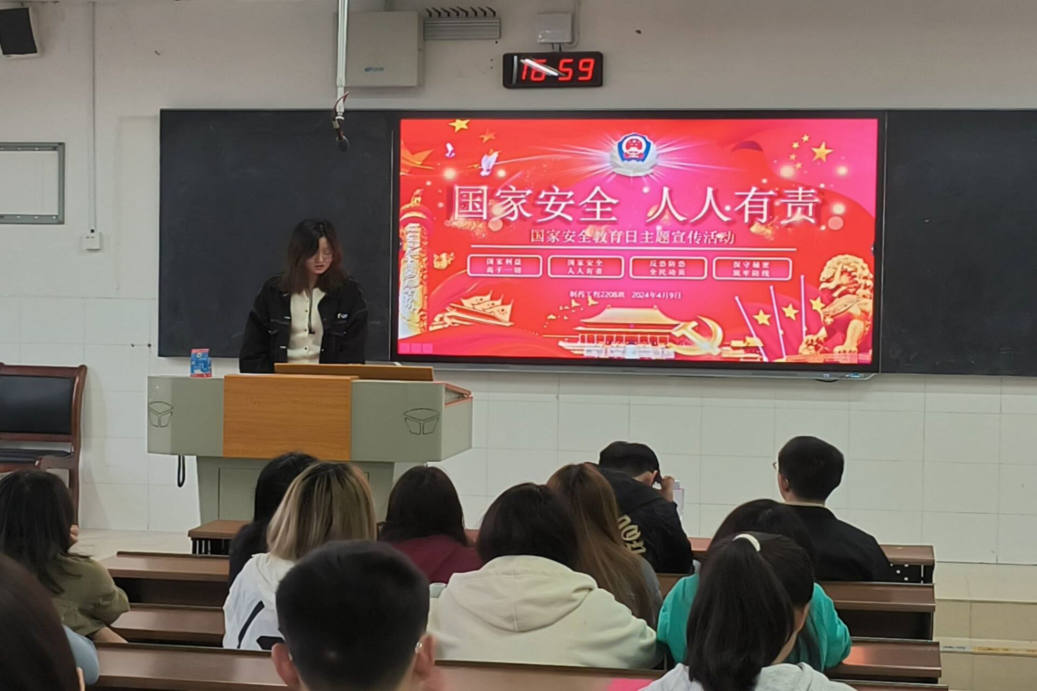(通讯员 王天一)4月9日16时50分,在至善楼301教室,万象城awc8882208班召开“国家安全日”主题班会,此次班会由班长吴晰睿组织开展,2208班全体同学与会。