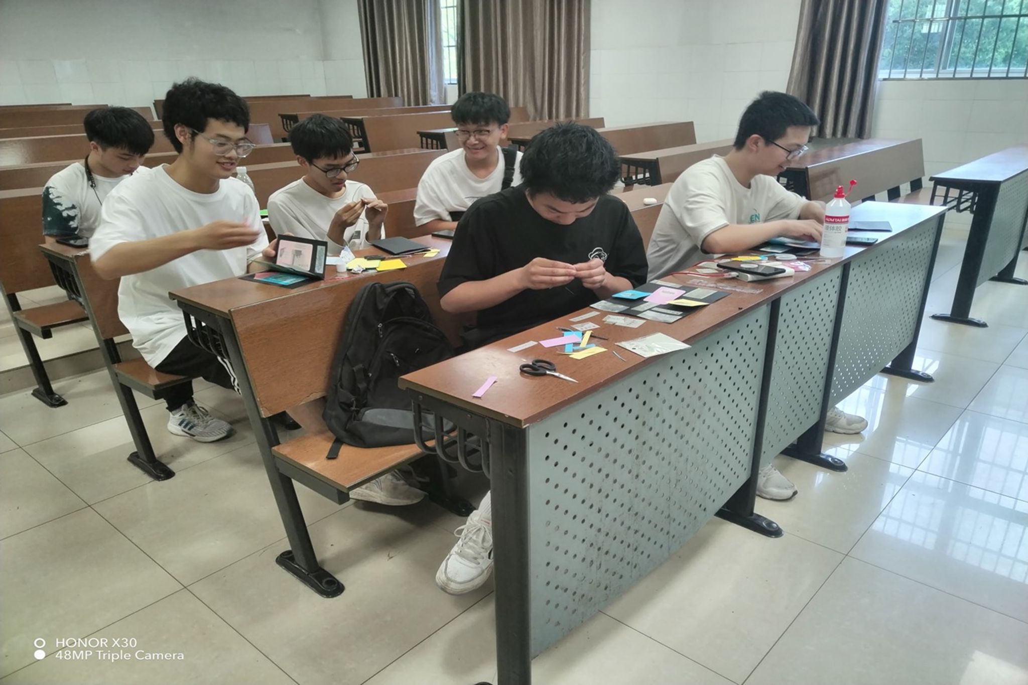 此次活动由理事长常欢准备相关材料和安排活动事项,副理事长张诗甜在QQ群及空间说说发送活动预告,通知会员活动地点时间及注意事项,理事会其他成员协助活动正常进行。活动期间,由张诗甜主持向会员们讲解实验过程,会员们利用已经准备好的卡纸、贴纸、便签纸、胶水、剪刀等物品按照提前发放的视频操作做成机关纸,并装饰成自己喜欢的样子,活动结束后会员们将自己的作品拍照发到会员群中,以便后续评奖。