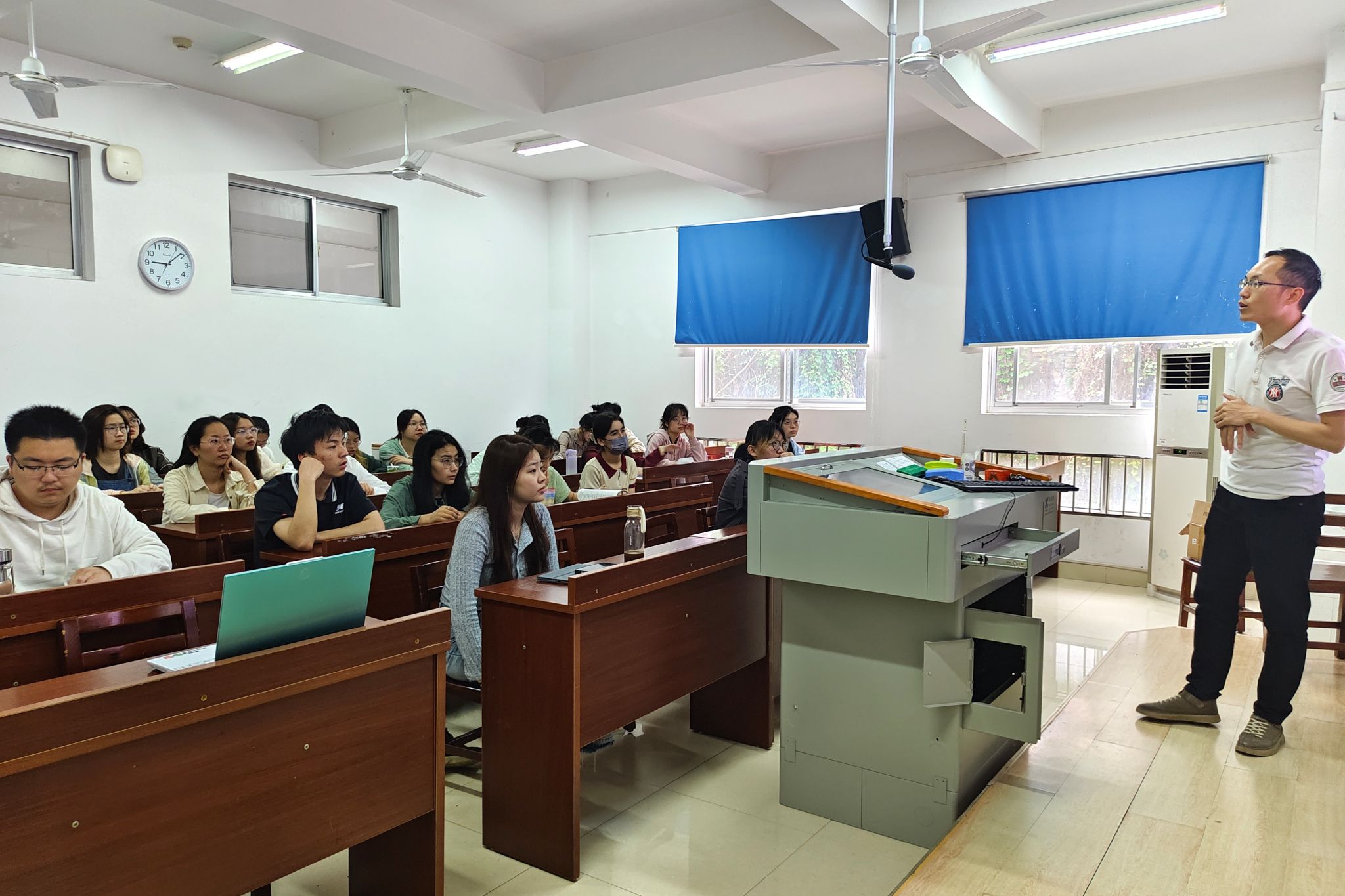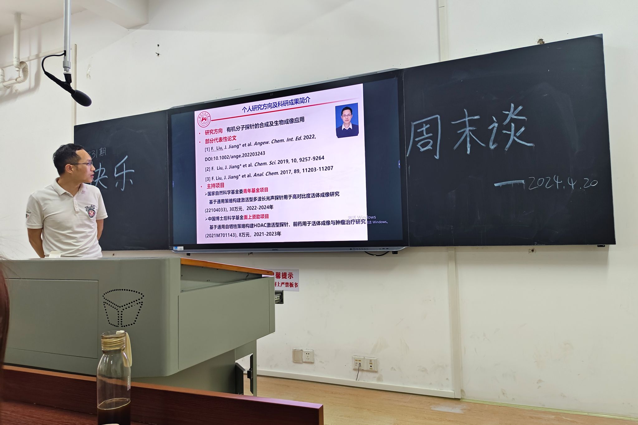 活动伊始,刘锋简单为同学们介绍了自己的个人研究方向和科研结果。通过刘锋对化学生物学的基本介绍,同学们得知在化学生物学的视角下,生物生体中有机分子的变化和与人类的疾病息息相关。而由于人类所不可避免的疾病,化学生物学的相关研究只会越来越为科学界所重视,因此也更值得更专业地学习。在聆听刘锋的讲解时,同学们了解到刘锋的研究团队主要是研究实用性的物品,比如临床例子ICG染料,这些染料可以用于确定人体中某些疾病的具体病灶点,这些与同学们都息息相关的研究无不激励着同学们积极投身科研事业。刘锋希望同学都能够了解化学生物学,如果对他的研究方向感兴趣的同学也欢迎参与到他的研究团队当中。