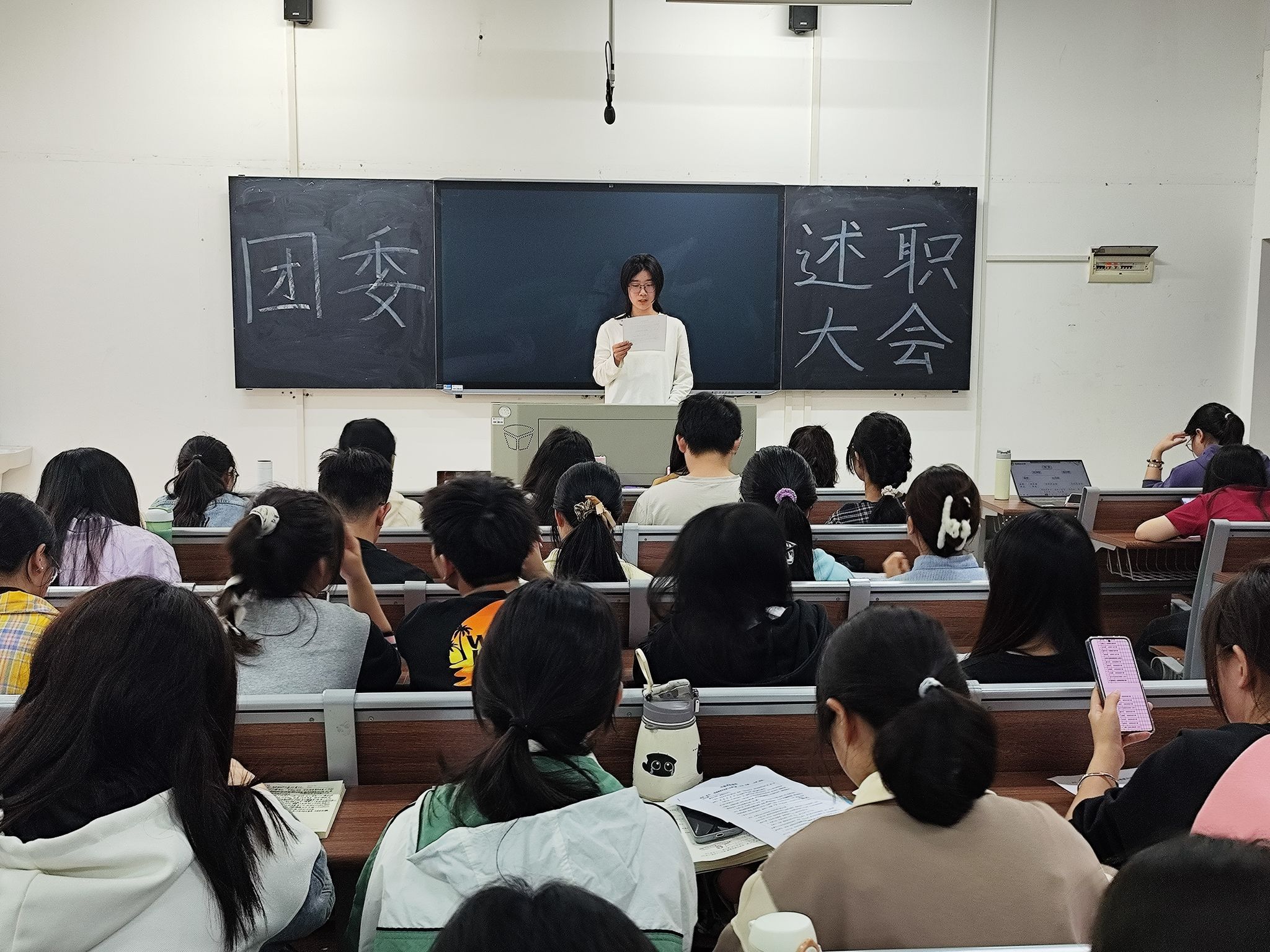 (通讯员 韦婷)4月22日12时30分,万象城awc888团委在化工院117教室召开2023-2024学年述职大会。此次会议由办公室第一负责人郭亭杉主持,化工院团委全体成员参会。