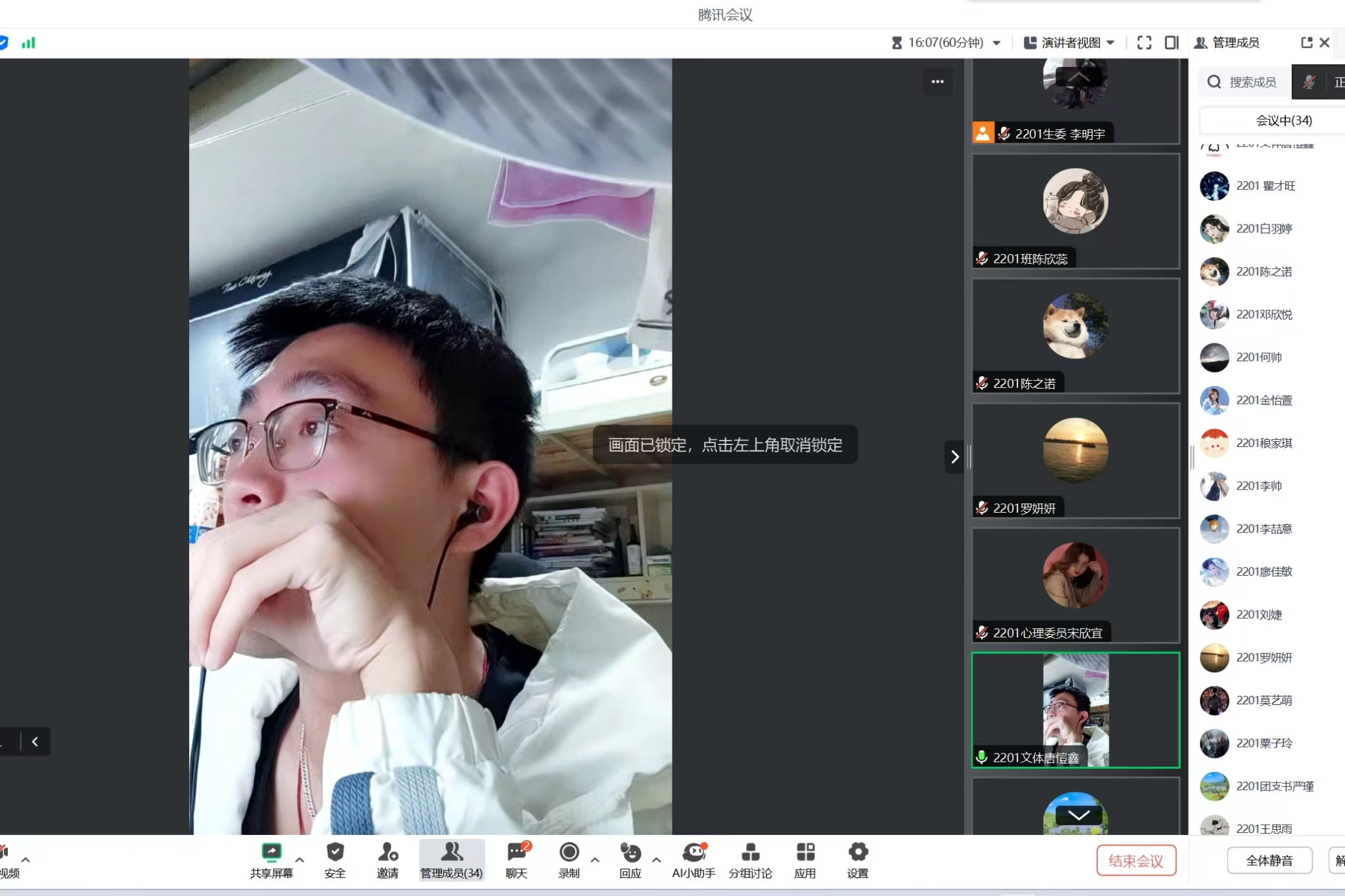 (通讯员 宋欣宜)4月22日21时30分,万象城awc8882201班于线上腾讯会议开展2023-2024年度的学生干部工作的述职会议。此次会议由心理委员宋欣宜主持,2201班共计34名同学参加。