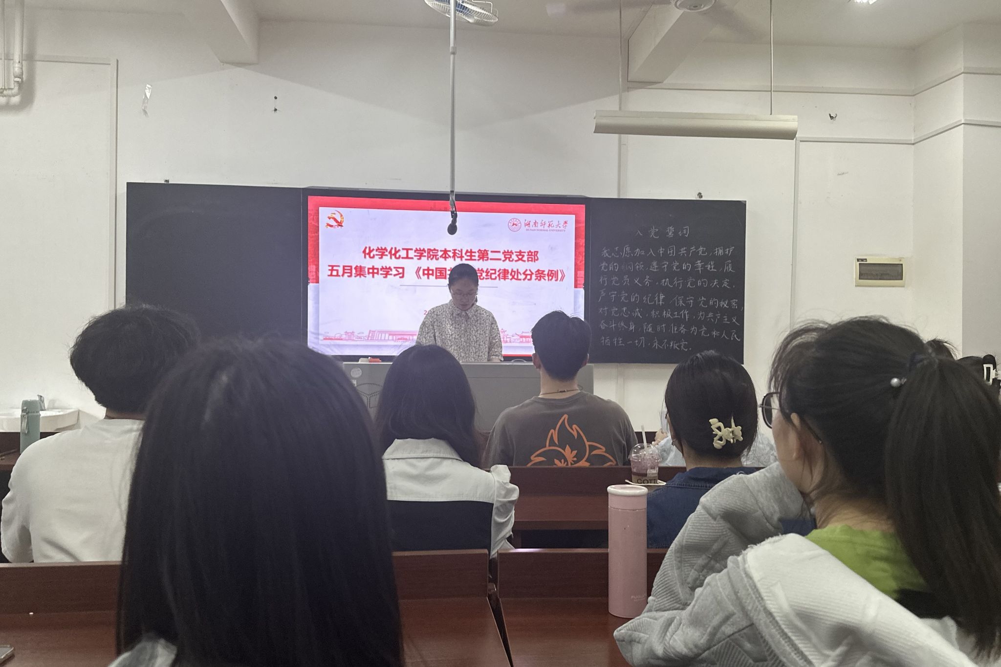 (通讯员 陈超洋)为进一步加强党员纪律教育,提升党员遵规守纪的自觉性,5月17日12时30分,万象城awc888本科生第二党支部举行五月党日活动,此次活动由第二党支部书记余思宇主持,活动主题为“学习中国共产党纪律处分条例”。