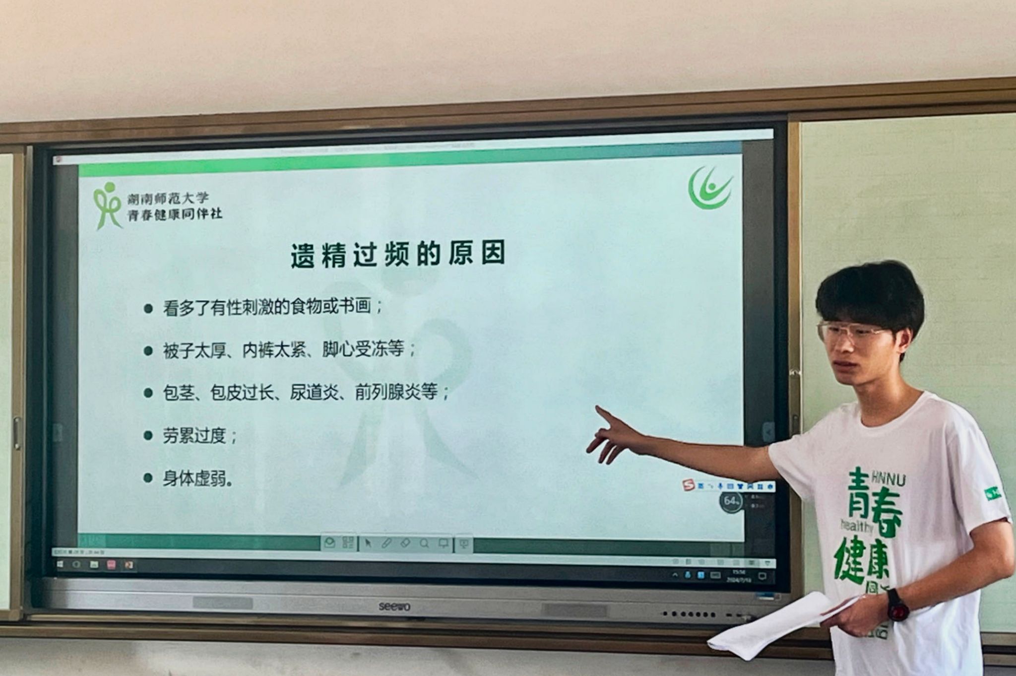 此次活动主要分为三项:理论教育、知识小测验和问题讨论。孙金鹏通过一个解说生殖器官的视频导入本次课程,将视频、文字和图片结合,带领同学们深入了解生命的由来和生殖系统的功能和变化。课件中具体呈现了精子与卵细胞变为嗷嗷待哺的婴儿的完整过程,让同学们体会到生命的来之不易。通过孙金鹏对青春期的正常生理变化的讲述,同学们提高了对于第二性征的认识和学会了呵护自身健康的方法。课程末,大家积极参与知识小测验和问题讨论,将所学知识内化于心,外化于行。