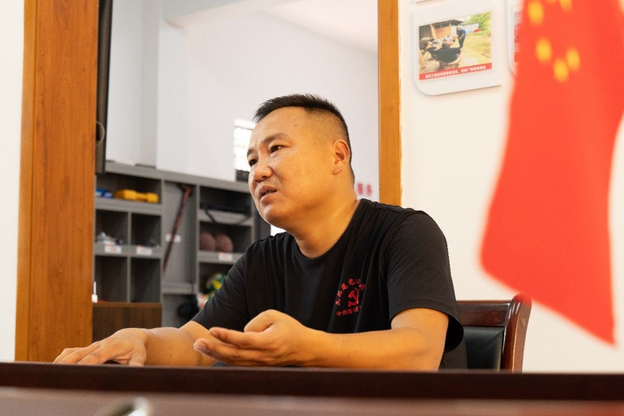 图为深溪口党总支委员向仁勇提供队员扒龙船调研建议