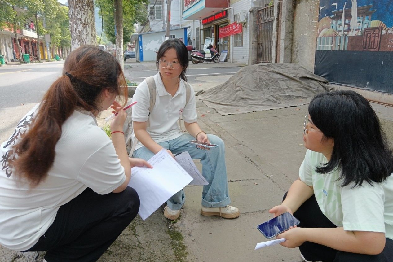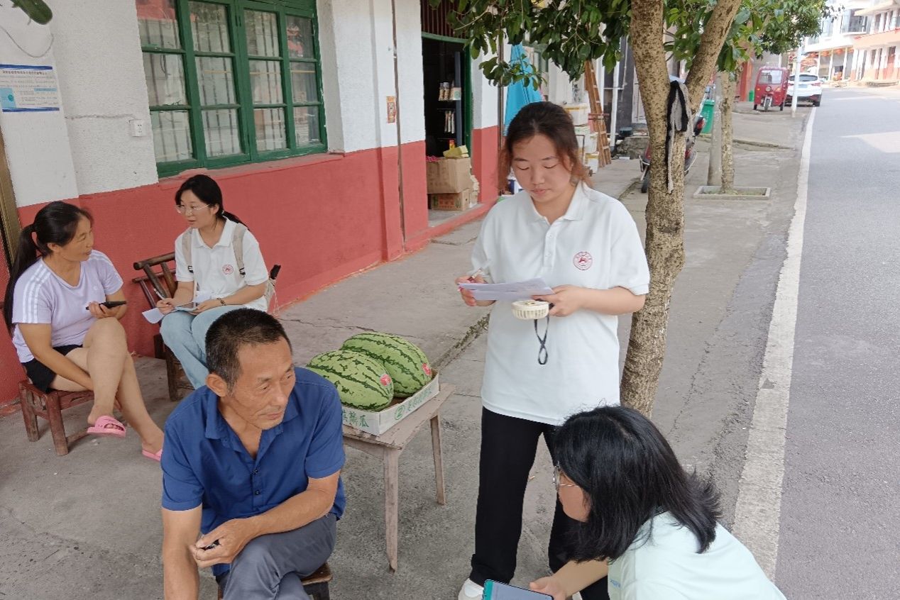 图为调研组成员就当地居民对扒龙船的了解情况进行入户实地调研