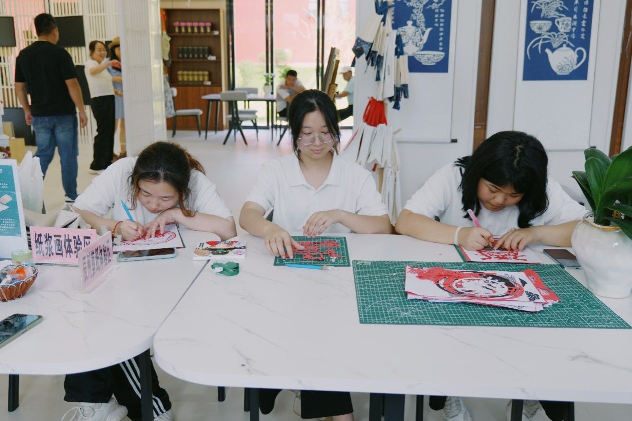 图为调研组成员在你好·沅陵 非遗·文创·好物馆调研龙舟文创产品的同时体验沅陵其他非遗文化辰州剪纸