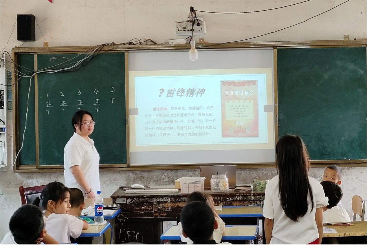 此次活动由实践团成员梅民红主讲,围绕识英雄人物、悟英雄精神和立雄心大志三方面展开讲述。梅民红老师以小组游戏的方式进入课程主题,不仅提高了同学们对于该堂课的兴趣,也有助于同学们认真思考他们的远大理想。梅民红老师再由几张英雄人物图片引入雷锋精神,给了同学们思考并回答问题的机会,并向同学们仔细讲解了如何在生活中践行雷锋精神。在课程结束时,梅民红老师引导同学们要树立远大志向,心怀大志,学习伟大英雄精神,从点滴小事做起,为我们国家的繁荣和富强贡献自己的力量。