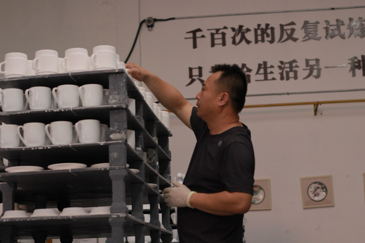 陶研所工作人员带领队员们参观中试车间,同时详细讲解了拉坯、印坯、刻画、施釉、烧窑等陶瓷制作过程。队员们就“釉下五彩”的制作特点、发展历程与发展现状提出问题,工作人员逐一回答,加深了队员们对醴陵陶瓷的历史底蕴的认识。