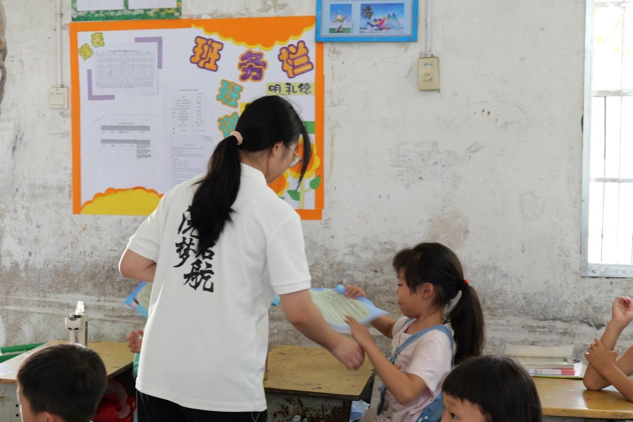 老师发放防溺水宣传单
