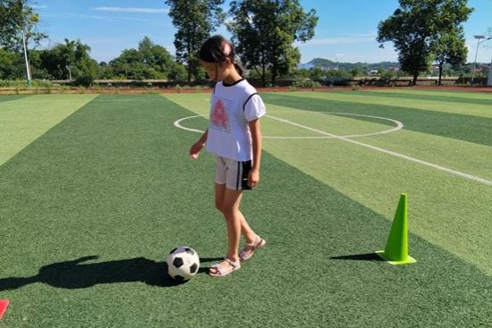张语嫣同学参加足球运球比赛