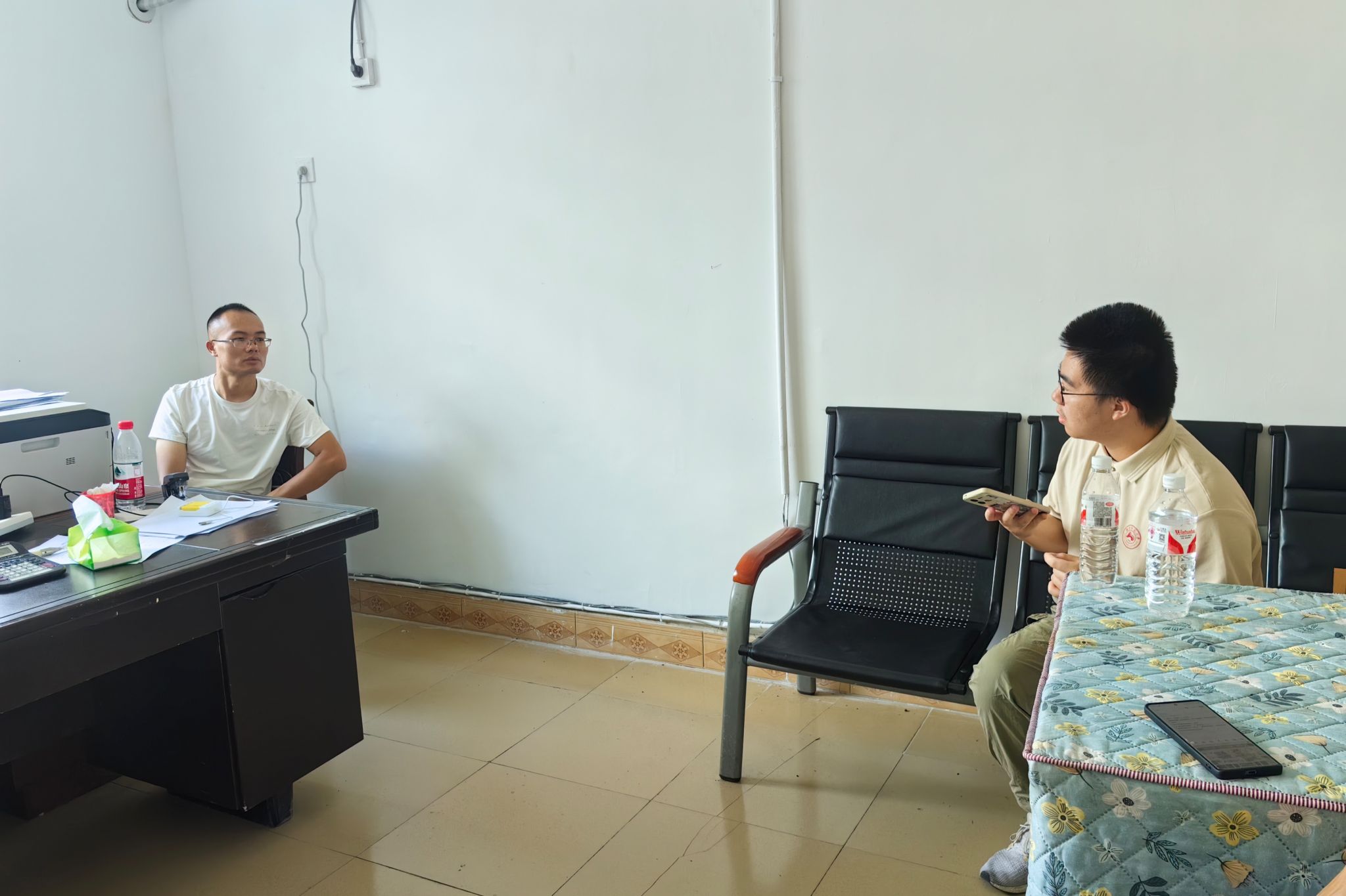 苏奕博与调研组成员进行交谈
