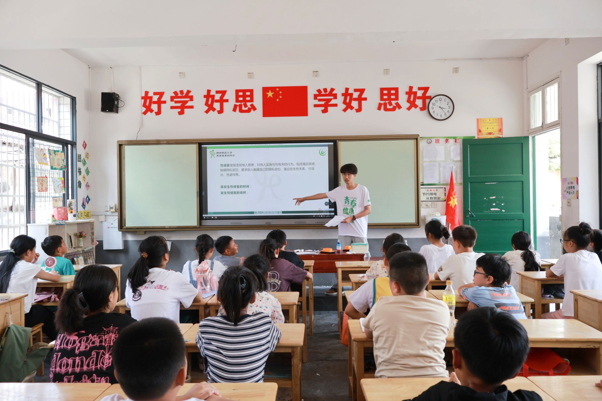 (通讯员 刘文琦 李琴辉)为了加强未成年人的自我保护意识,提高他们在面对性侵害时的防范和应对能力,7月21日下午,万象城awc888赴益阳市安化县暑期社会实践团——“星火接力,丹心筑梦”队在马路镇完全小学夏令营五年级的全体学生中开展青春教育讲堂活动。活动由实践团调研组组员孙金鹏和实践团调研组组员李艳泽主持。