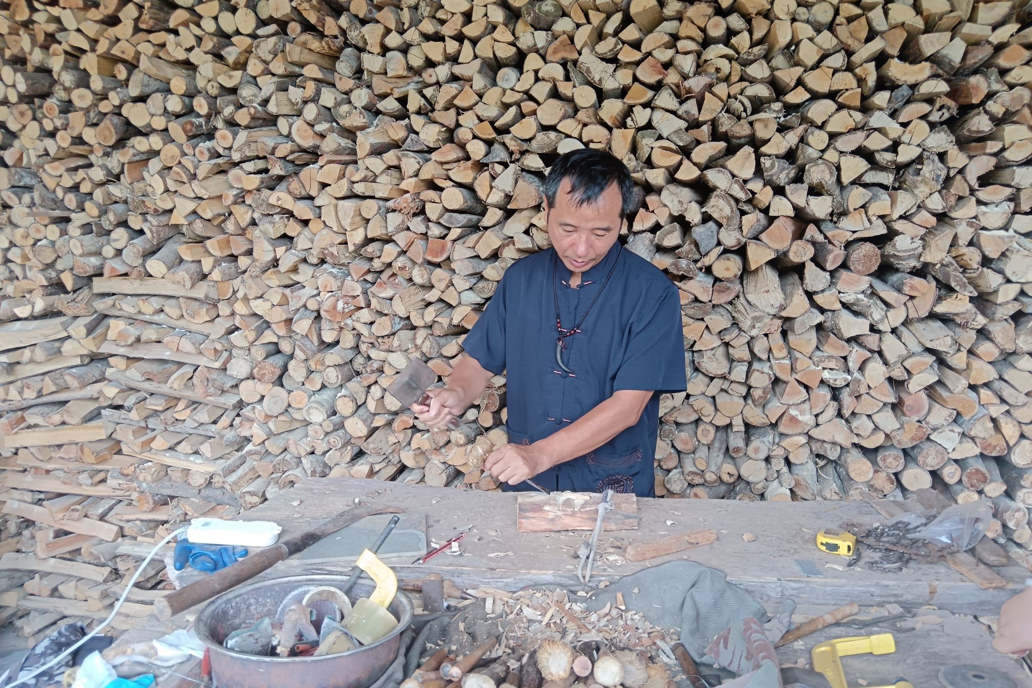 向清国告诉调研组成员,傩文化与巫文化相近。受这种印象的影响,傩文化曾被视为封建迷信,一定程度上限制了傩文化的传承以及发展。现在,国家高度重视中国传统文化的发展,傩文化渐渐重回大众视野。他也提到,尽管沅陵对傩文化的保护力度很大,但由于傩雕手工传承的学习周期长、学习难度大以及文创产品回报率低等问题,傩文化的传承依旧面临挑战。在这个过程中,向清国向调研组成员们近距离演示了傩面具的制作流程。一个傩面具的制作就包括选料、构图、雕刻等七个步骤。