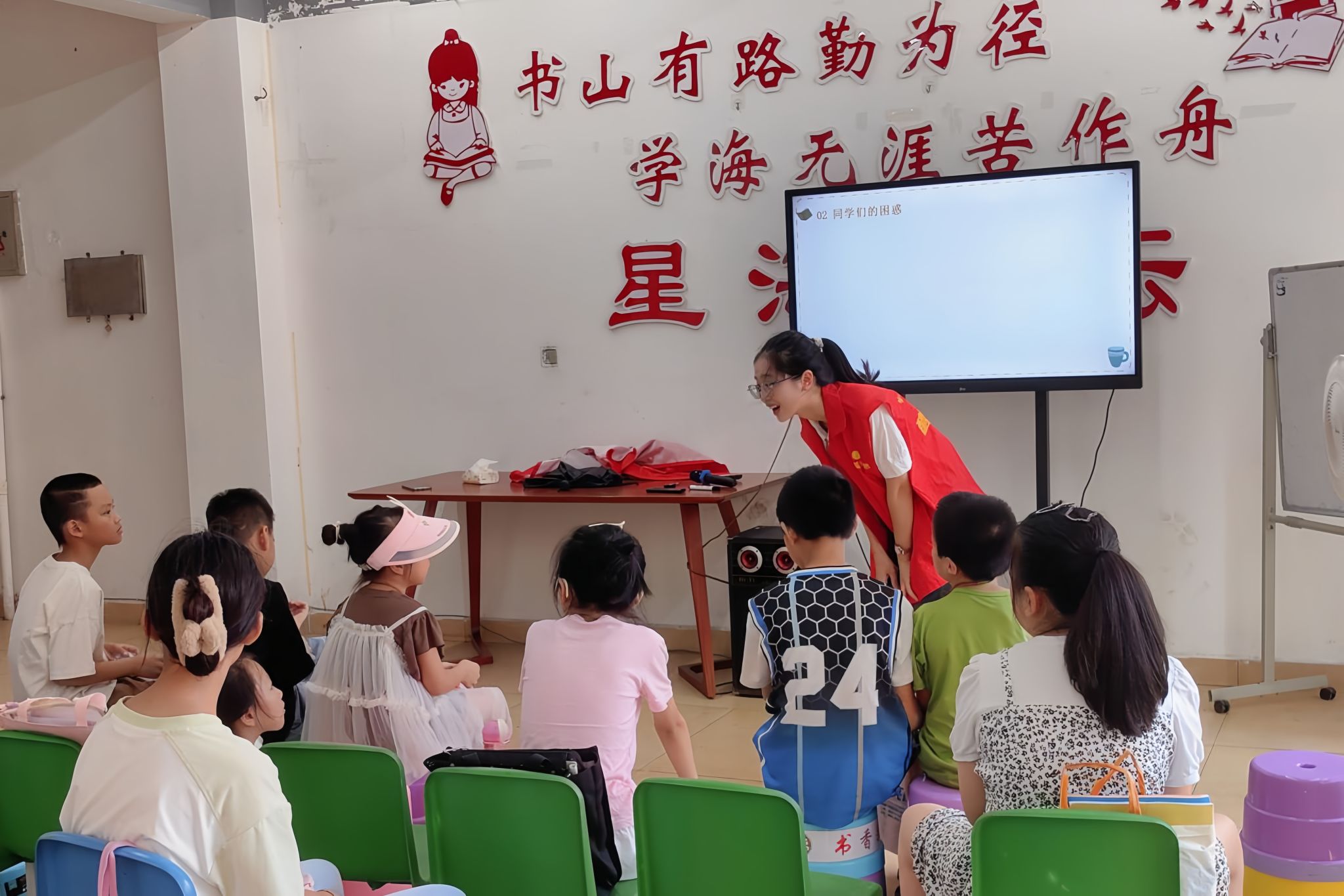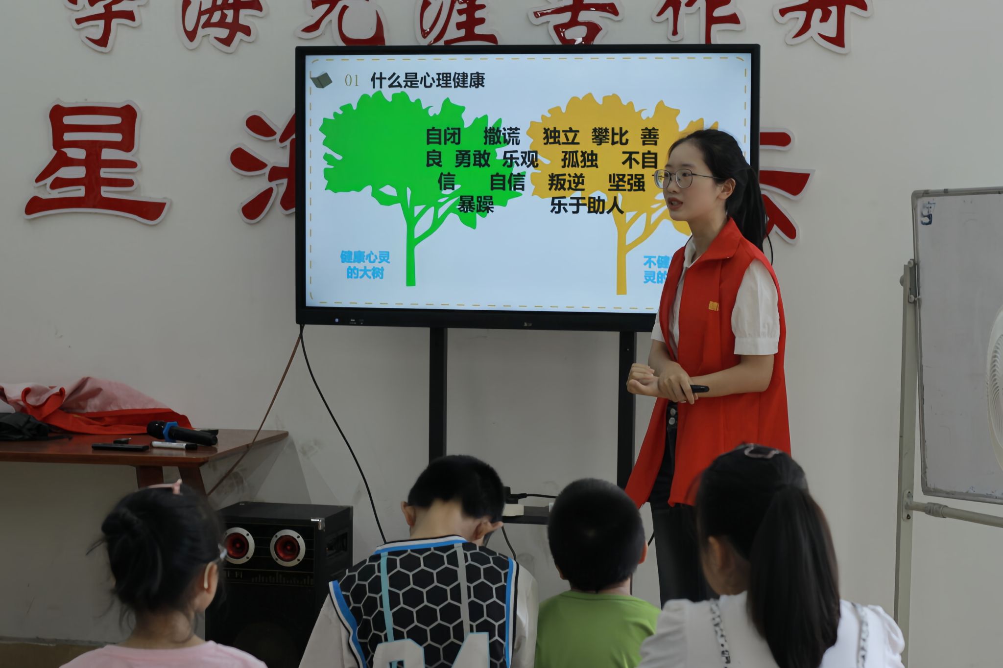 此次课程主要从“什么是心理健康”、“同学们的困惑”以及“如何促进心理健康”三个方面展开。实践队成员在课前组织不同年龄的学生填写了对心理健康了解程度的调查问卷,主讲人在课堂上以问卷所反馈的内容作为切入点,引导学生发现、分析并思考自身可能存在的心理健康问题,让学生明白身体与心理同时保持健康的状态才是真正的健康。同时,主讲人对学生提出的问题进行了解答,并告诉学生出现心理问题时不要封闭内心,而是及时告知父母或者寻求老师的帮助。课堂以一部动画短片作为结尾,师生共同观看动画片,并讨论其中的心理问题,使学生进一步认识到心理健康的重要性。