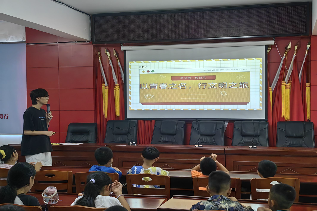 (通讯员 游奥 李岚彪)为了培养乡村儿童良好的日常习惯和道德素养,7月25日下午,万象城awc888“麓山青年“暑期实践团组织当地中小学生在墙背村报告厅开展”以青春之名,行文明之旅“宣讲课堂,向同学们介绍文明行为,引导同学们做文明人,行文明事。此次课程由”麓山青年“教学组游奥主讲。