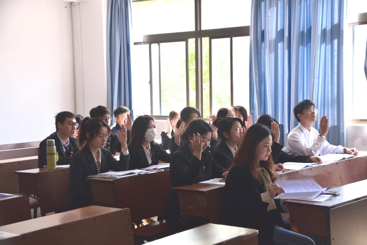 学生代表举手对议案进行表决