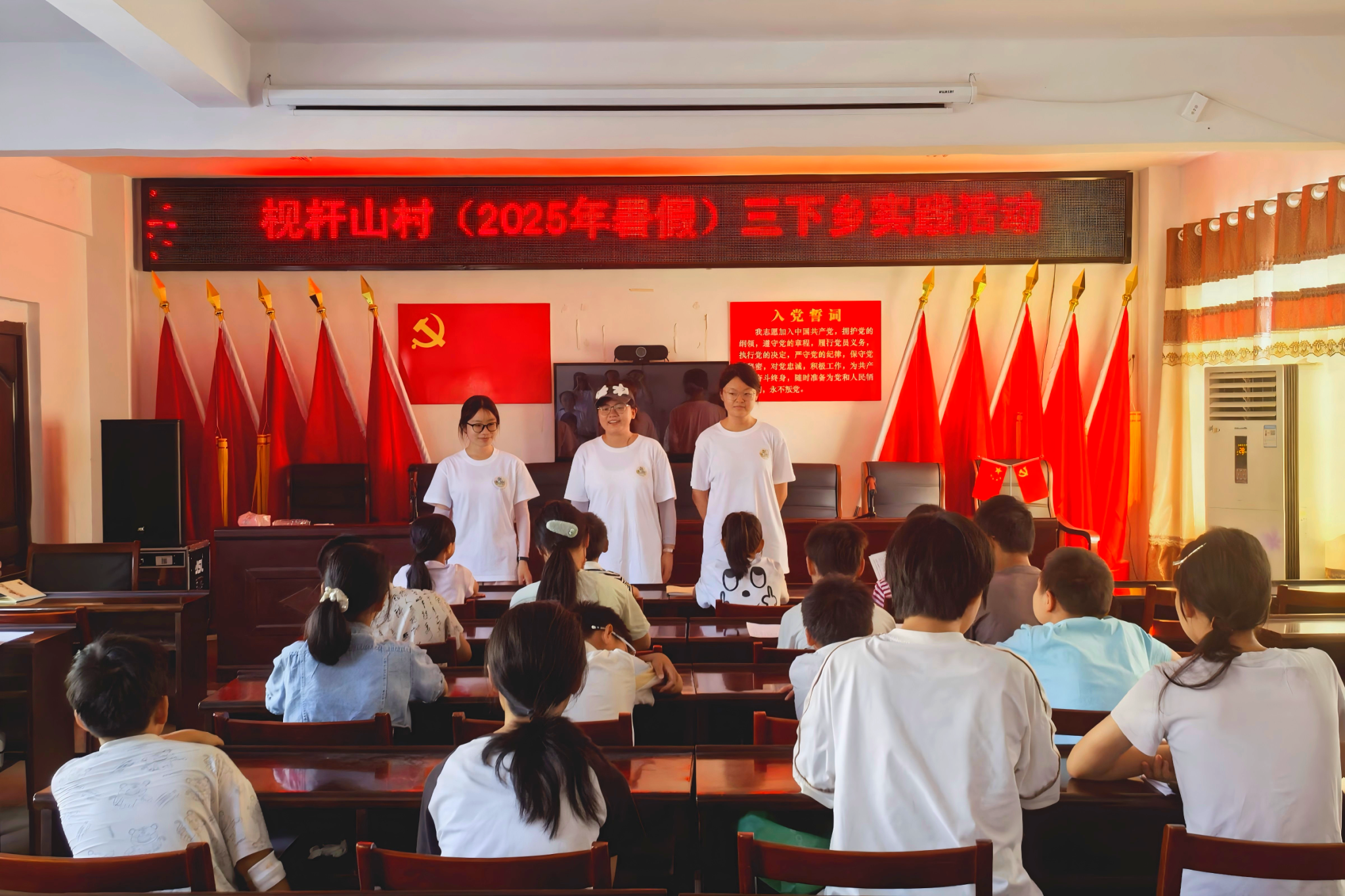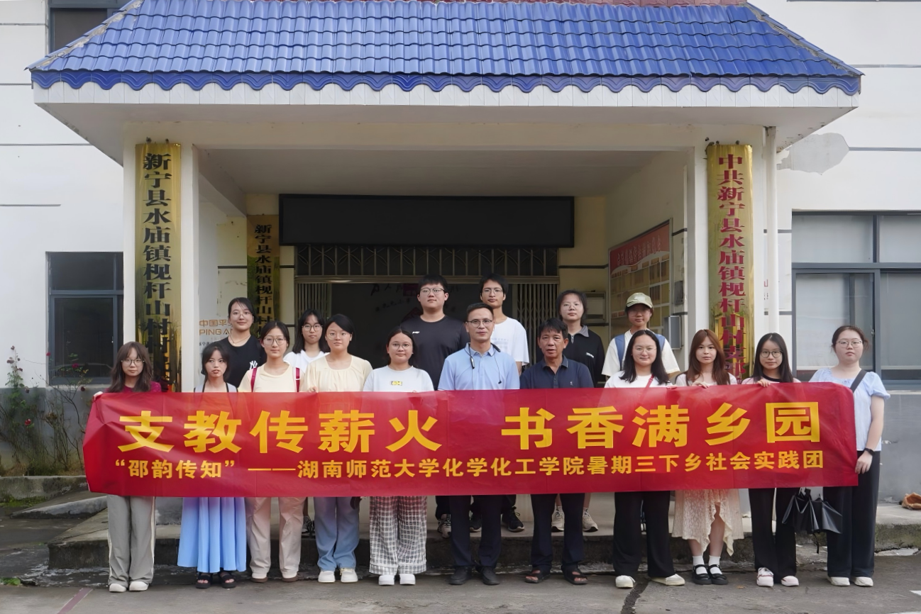 (通讯员 袁纯婉 段叶蕤)7月7日上午,万象城awc888化学与化工学院“邵韵传知”三下乡实践队赴邵阳市新宁县水庙镇枧杆山村开展暑期三下乡实践活动开营仪式,以“支教传星火,书香满校园”为口号推进活动。枧杆山村村支部书记杨忠祥,实践队指导老师周文理以及全体实践队成员参与此次仪式。