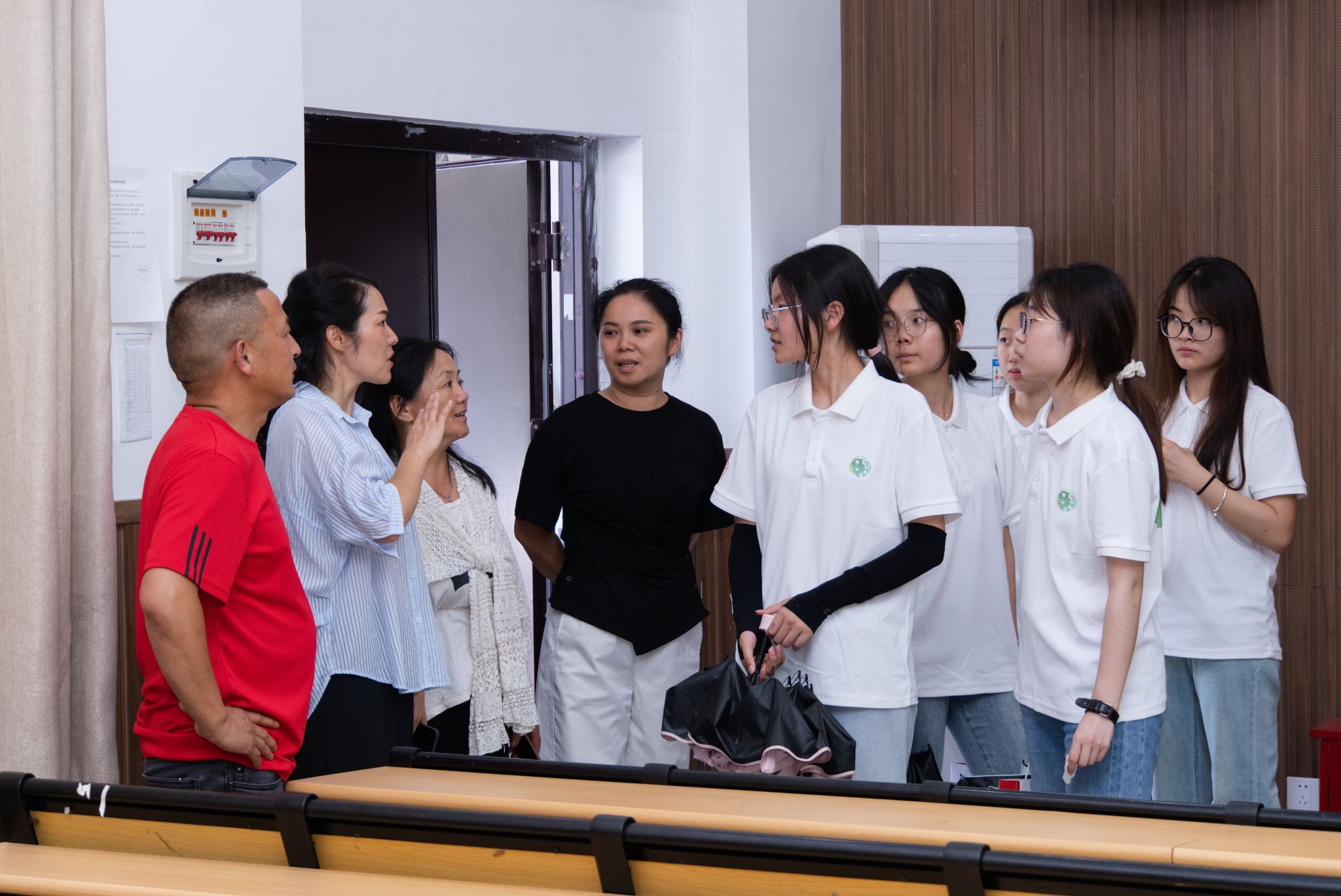 座谈会结束后,在当地领导及学校老师的带领下,实践团成员前往寨市学校,实地了解教室、操场、礼堂等教学场地情况,检查教学设施、硬件设备的配备现状。队员们认真记录场地条件,结合实际情况现场讨论后续教学的组织形式与活动安排,与学校负责人交流意见,确保实践更贴合需求、富有实效。