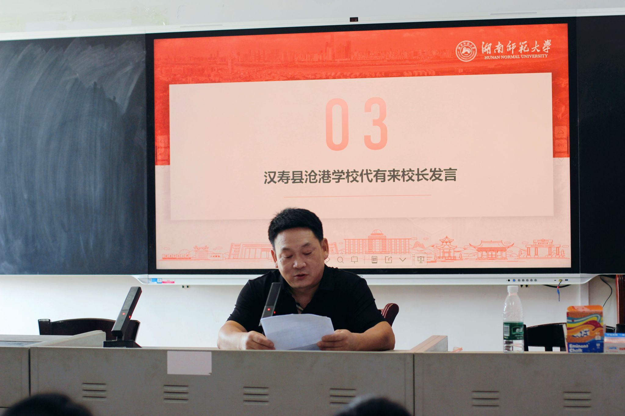 在庄严的国歌歌声中,典礼正式拉开帷幕。汉寿县沧港镇中心学校校长龙海波以“教育是一棵树摇动另一棵树”为喻,鼓励学生珍惜学习机会,在多元课程中拓宽视野;副校长代有来则从乡村教育发展角度,对社会实践团的到来表示感谢,期待双方共同为学生成长赋能。团队指导老师朱伟鹏分享道,三下乡实践是青年学子将专业知识与社会服务结合的宝贵机会,要求团队以系统化的课程设计为乡村学生搭建素质成长平台。