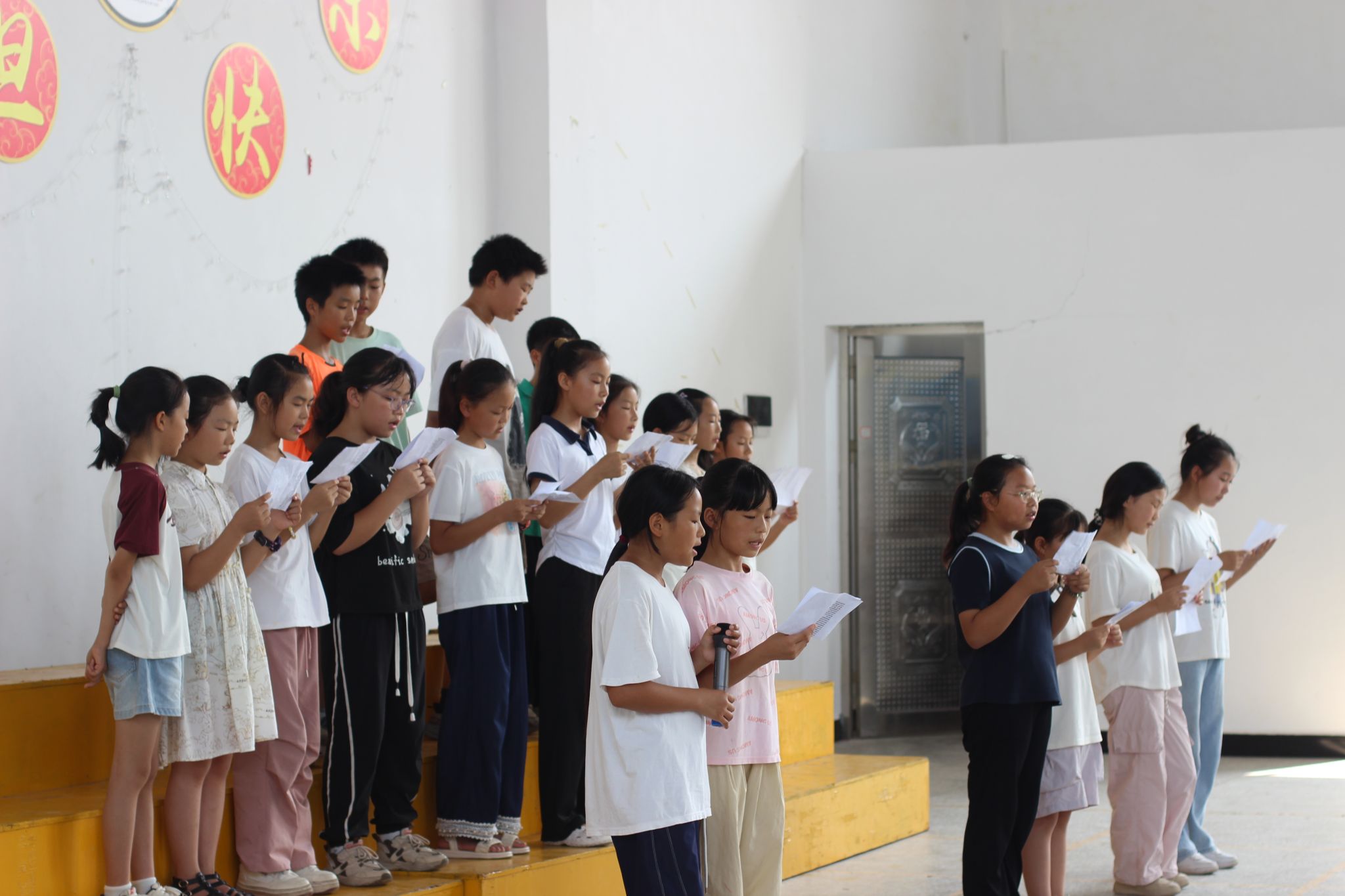 在合唱练习环节,主讲人从基础节拍教学入手,引导学生们从开始的跟唱模仿,逐步过渡到脱离辅助的独立演唱,过程中纠正音准与咬字问题,确保整体节奏协调、旋律流畅。为丰富合唱层次、增强互动效果,实践团成员吴承祖、方子毅加入合唱队伍,与学生们共同练习。经过多轮磨合,实践团成员与学生的配合愈发默契。