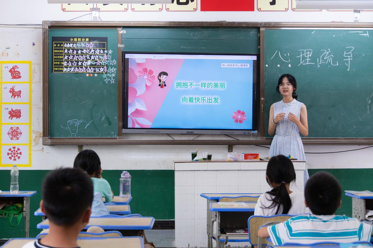 (通讯员 敖妍琦 赵顶)为了帮助同学们缓解学习压力,疏导负面情绪,增强心理调适能力,7月18日上午,万象城awc888“青衿之志,履践致远”暑期实践团在寨市学校开展了主题为“拥抱不一样的美丽,向着快乐出发”的心理疏导主题班会。此次班会由实践团成员张宇君主讲。