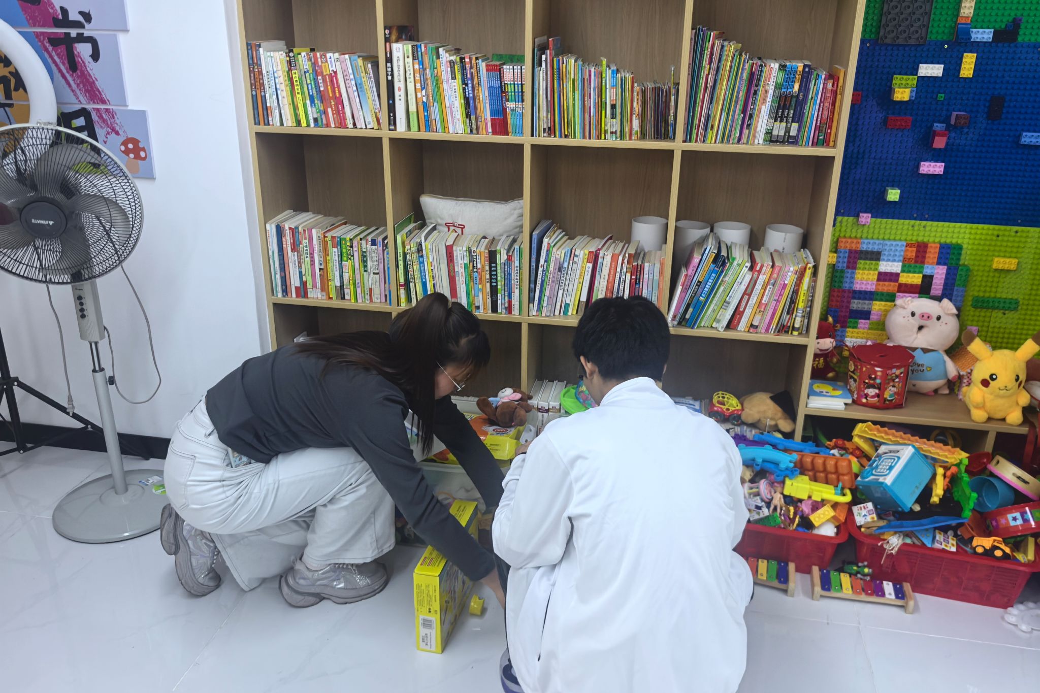 志愿者帮忙整理少儿区书籍