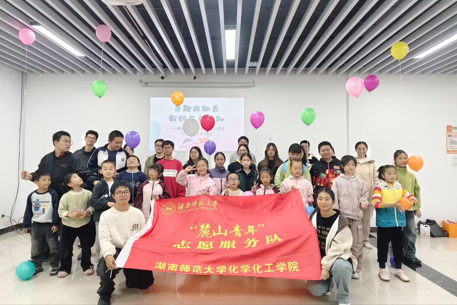 此次活动分为理论讲解与实践操作两个环节。在理论讲解环节,主讲人围绕化学元素周期表前五位元素,通过图文并茂的方式带领小朋友们初步认识了这些元素的性质。同时,讲解过程中穿插生动科普动画,进一步激发了孩子们对科学世界的好奇与探索热情。在实践操作环节,志愿者耐心引导小朋友完成氦气球制作与硼砂水晶泥调配,孩子们动手尝试、踊跃提问,在实践中体会到了化学的奇妙魅力。制作完成后,小朋友们手持作品与志愿者合影留念,志愿者对活动现场进行清理。