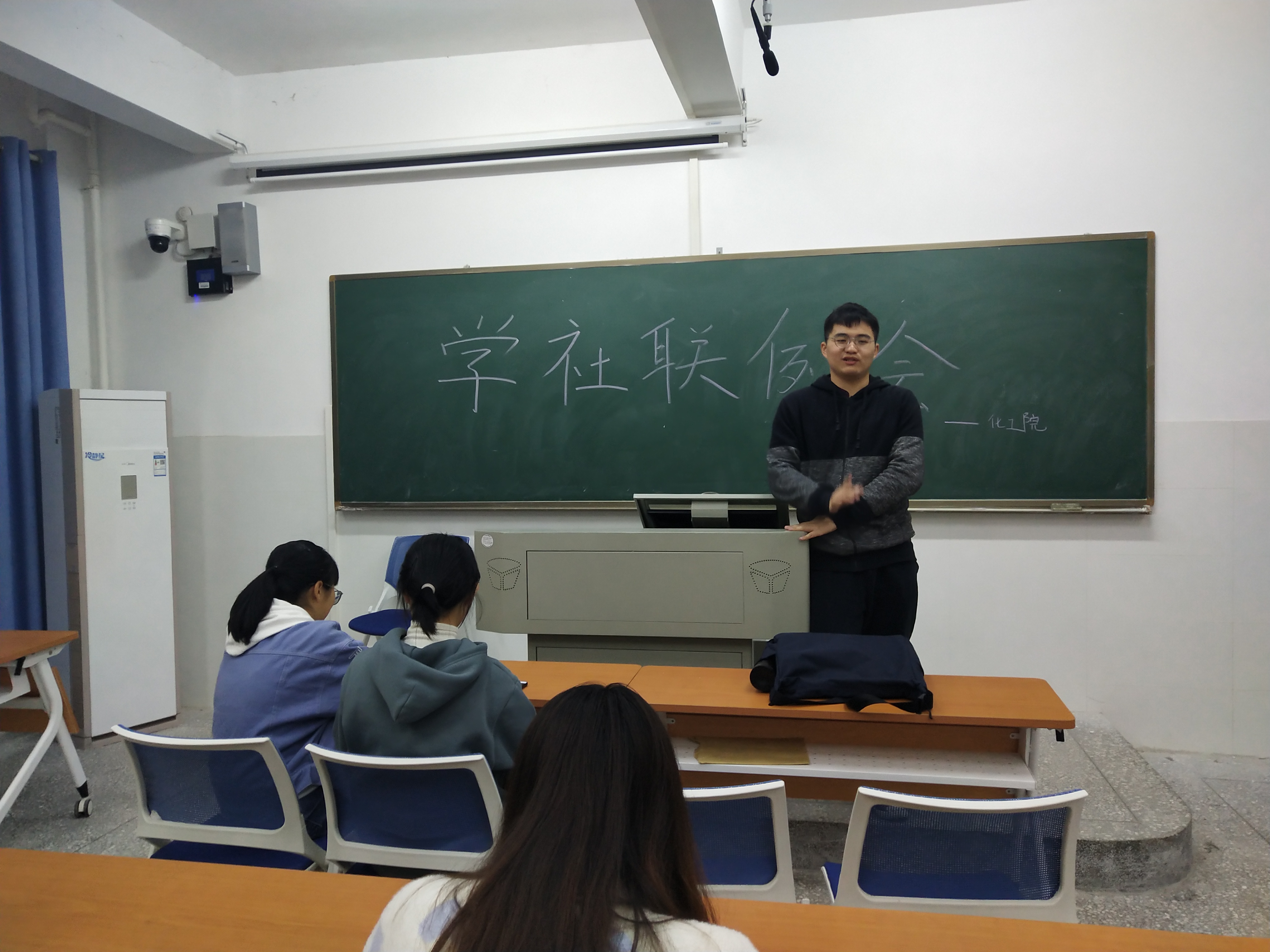 (通讯员 杨翠文)11月21日中午12时30分,万象城awc888学社联在中和院117教室召开例会,学社联主席胡张瑞、副主席夏萌萌、各部门部长、各社团理事长和团支书出席此次会议。