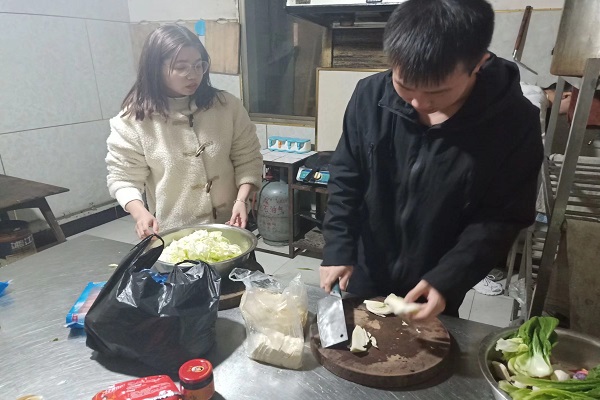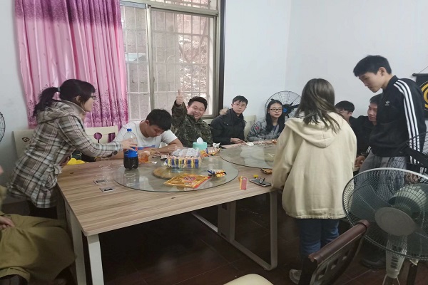 活动之前,班长赵恒淼负责联系了农家乐的场地。按照菜单购买完食材到达场地后,女生们进行了洗菜和切菜等准备工作,男生则负责将食材串到一起准备烤串。随后,同学们一起玩各种游戏,如围棋、飞行棋、狼人杀等,还一起打台球、乒乓球,气氛活跃。
