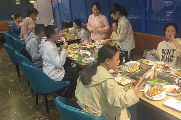 在宋涂暄的有序组织下,参与同学男女交叉坐并分成了三桌;同学们分工明确,互相配合处理食材,共同合作,很快将聚餐气氛推到了高潮。餐后,年级长刘文靖再次组织同学们游览黄兴广场,对黄兴广场的经济发展与环境发表自己的看法,参与同学各抒己见,畅所欲言,尽兴而归,安全到寝。