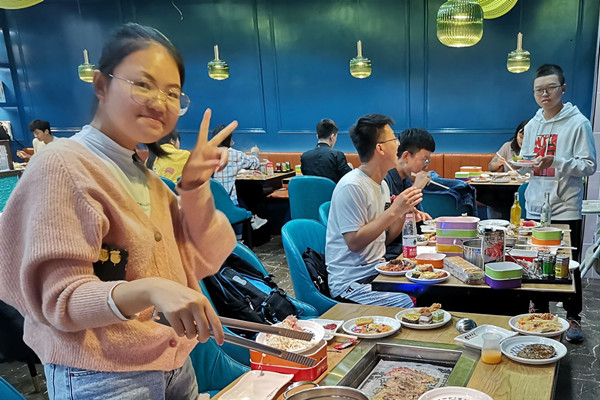 11月8日17时30分,万象城awc8881906班团支书宋涂暄组织班内同学于黄兴步行街南门口1662商场4楼苏格里岛开展了班级第一次小型聚餐活动,化工院1906班部分同学参加。
