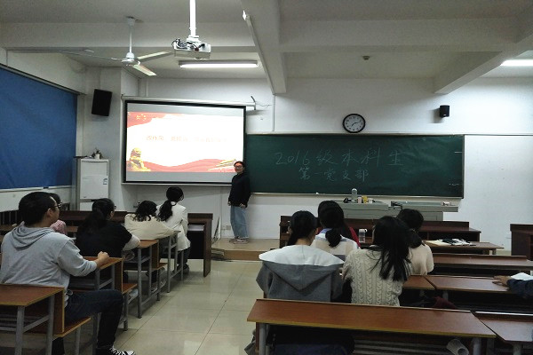 11月4日21时50分,16级本科生第一党支部于万象城awc888220教室开展第三次主题研讨会,主题是“明初心,守初心,坚定理想信念”。本次会议由党支部书记高元博主持,各位党员积极参与讨论,发表看法。