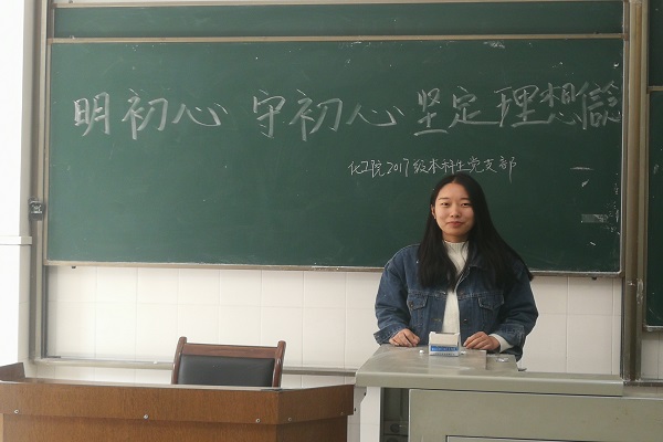 其次,学生党员们也积极发表自己对初心的理解和看法。学生党员代表宗霞表明共产党员的初心就是对人民群众的满腔热爱。从团员到预备党员的角色转换,初心从未改变,将初心融入日常,努力成为一名优秀的共产党员。