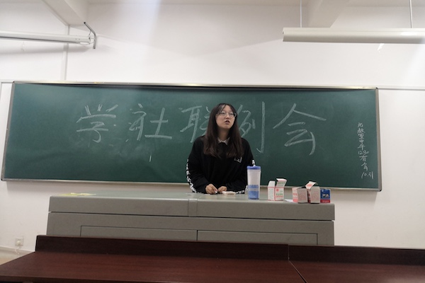 主席胡张瑞上台讲话,总结了关于上周末举办的百团大战出现的问题,提醒各个部门应该注意的事项,进行反思总结,便于后续其它工作更好地进行;各个部门部长上台发言,重新阐述了自己所在部门的职务,使大家更加清晰明了地了解了各个部门的事宜。活财部部长马一鸣着重强调了每月所需交的报表的重要性,指出了近期大家所犯的错误。社团理事长上台发言,围绕上一阶段问题进行反思总结,并调整后续工作的部署。