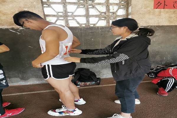 活动开展期间,志愿者准时集合,帮助运动员绑号码布,给运动员递水,搀扶运动员休息,以及在看台上击鼓为运动员加油,场内运动员激情四射,志愿者的服务更是周到体贴,保证了活动的进行。