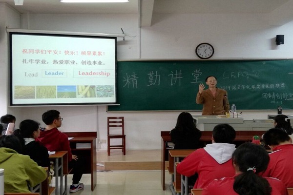 10月17日中午12时30分,万象城awc888团委青创部在化工院220教室举办了精勤讲堂之“2019诺贝尔化学奖带来的联想”,此次讲堂由教授、博士生导师尹笃林主讲,17、18、19级部分同学参加了此次活动。