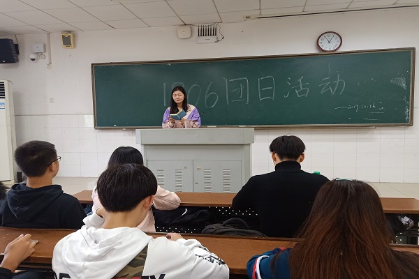 恰逢中华人民共和国成立七十周年,祖国举办盛大的阅兵仪式,部分同学上台分享个人的阅兵观后感,共同感受国家的富强与强大。此外,三位学生代表石云芳、刘贤、彭佳靓分别上台讲述近年来各自家乡在衣食住行等方面发生的巨大变化,让同学们切身实际地感受到祖国的富强。