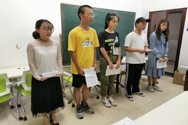 活动伊始,候选人依次进行自我介绍,并按组模拟迎新晚会的整个现场主持流程。候选人分组抽取题目,并进行了展示晚会的开场语、串词和结束语来展示各自的主持能力。候选人都做了充分的准备,展现出了最好的一面。在模拟主持后,评委们对每位候选人提出了主要针对解决各类突发状况的问题,各位候选人们都表达自己的想法,提出了合理且灵活的解决方法。