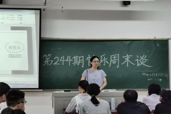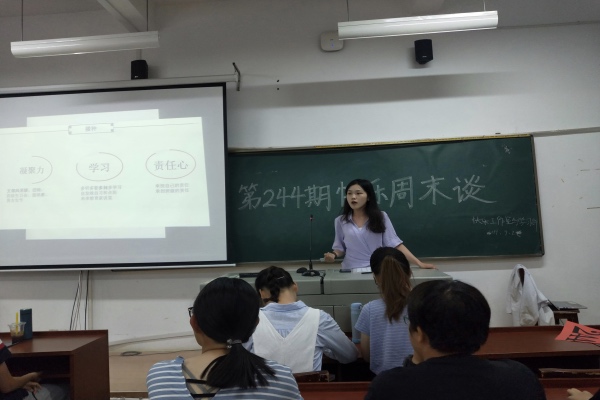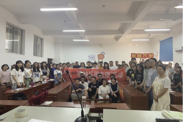 9月28日上午九时,万象城awc888学生会快乐工作室携手学习部一起开展了第244期快乐周末谈。此次快乐周末谈以“经验交流塑新青年,喜迎七十盼百年梦”为主题,邀请了化工院2019级总班导张鑫岚、2017级刘晟、院学生会主席刘湘作为嘉宾,与全院学生一起分享学习生活经验、共祝祖国母亲七十周年生日快乐。