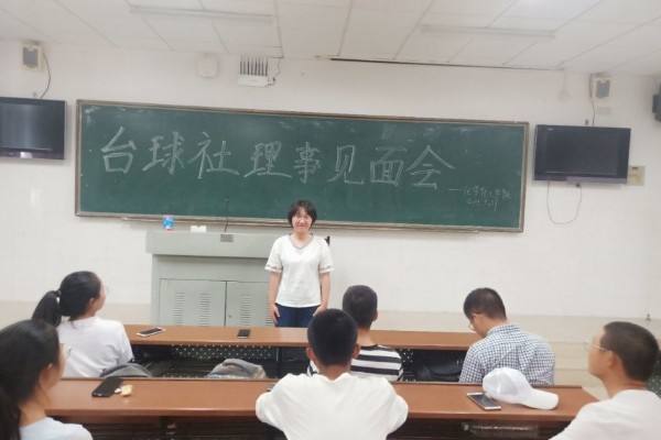 会议开始,唐美男和戴诗妍对七位新理事表示了欢迎,并组织所有理事进行了自我介绍。所有理事初步了解后,唐美男和戴诗妍为所有理事讲述了近期的工作和培训安排,让新理事更加充分的了解了台球社,积极配合学校的工作。台球社财务、宣传上的制度在所有理事的商议后也得到了初步的确定。