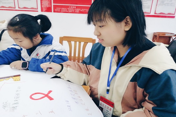 (通讯员 刘琦 桂甜甜)12月1日9时,万象城awc888于望月湖岳龙社区支部委员开展“为艾发声,画在人心”志愿活动。此次活动由1902班青协委员桂甜甜与1906班青协委员刘琦共同主持,共4名志愿者参加。