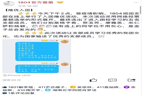 (通讯员 伍韬)3月13日14时,万象城awc8881804团支部在线上举行推优入团会议。