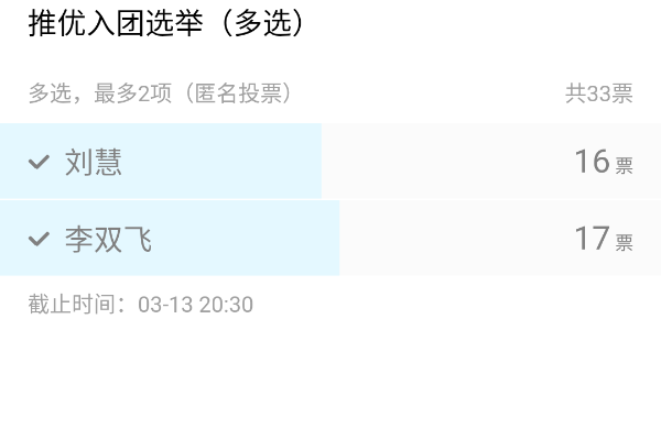 (通讯员 刘慧)3月13日下午6时2分,1805团支部召开推优入团会议。会议以线上选举投票方式进行,由1805班班长郁茏洙主持,参会人员为1805全体成员。
