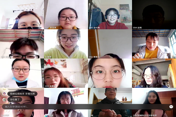 最后由班导师宋建新以及2017级辅导员付玉丽对同学们的问题进行回答并总结。宋建新指出“网课”的弊端以及优势,并给想要考研的同学提出建议,要求同学们 “网课学习不松懈,自主学习不落下”。付玉丽表示同学们应听从学校指挥,不瞒报、不谎报、不信谣、不传谣、不造谣并如实填写健康卡。