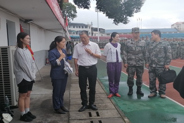 (通讯员 唐曦阳)9月21日上午,我校副校长周俊武、武装部副部长彭露一行前往田径场看望慰问参训新生、军训教官及新生辅导员。