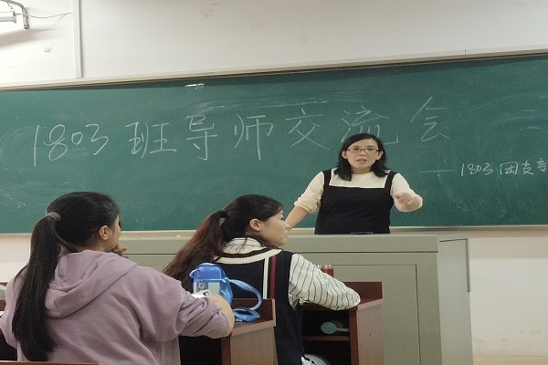 此次班导师交流会由团支书戴诗妍主持。班导师景一丹结合自身经历分享了一些与学习和生活相关的建议,解答了部分同学提出的关于公费定向生就业、考研的问题,为同学们树立明确的目标。最后,班导师表示会努力了解公费定向生的政策,在下一次的交流会中解决这次交流会的没有给同学们解答的疑惑