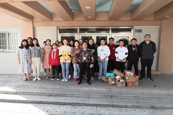 青协委员邓佳琪,组织各个寝室集中寝室内的快递纸箱,并向周围的寝室收集他们废弃的快递纸箱。同时通过QQ联系并督促男生志愿者行动起来。在长塘山一栋楼下,邓佳琪组织志愿者将收集到的纸箱堆放到一起。在确定所有志愿者都到场后,大家在楼下与宿管阿姨拍照合影。